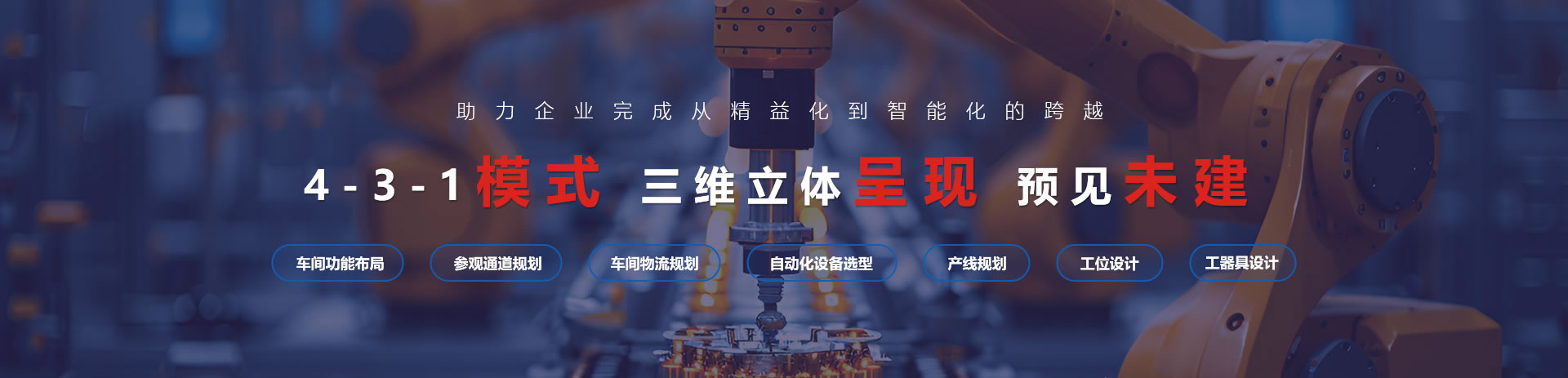 “工廠布局規(guī)劃”是交鑰匙工程。由專業(yè)團隊從全局觀出發(fā),應用布局規(guī)劃“專業(yè)技術(shù)”和“跨界創(chuàng)新模式”,整合自動化、數(shù)字化資源,為工廠提供規(guī)劃到落地全流程的“預見未建”一站式智能工廠規(guī)劃服務。